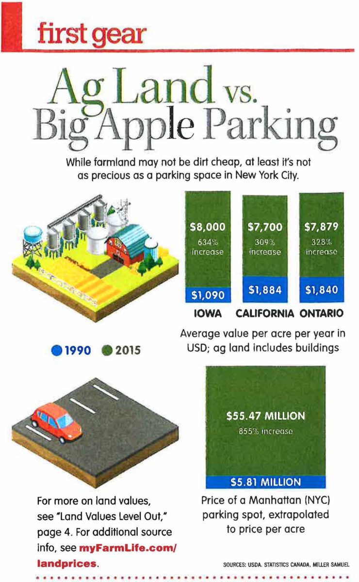 Our Manhattan parking stats were compared with the average value per acre of agricultural land in FarmLife magazine.