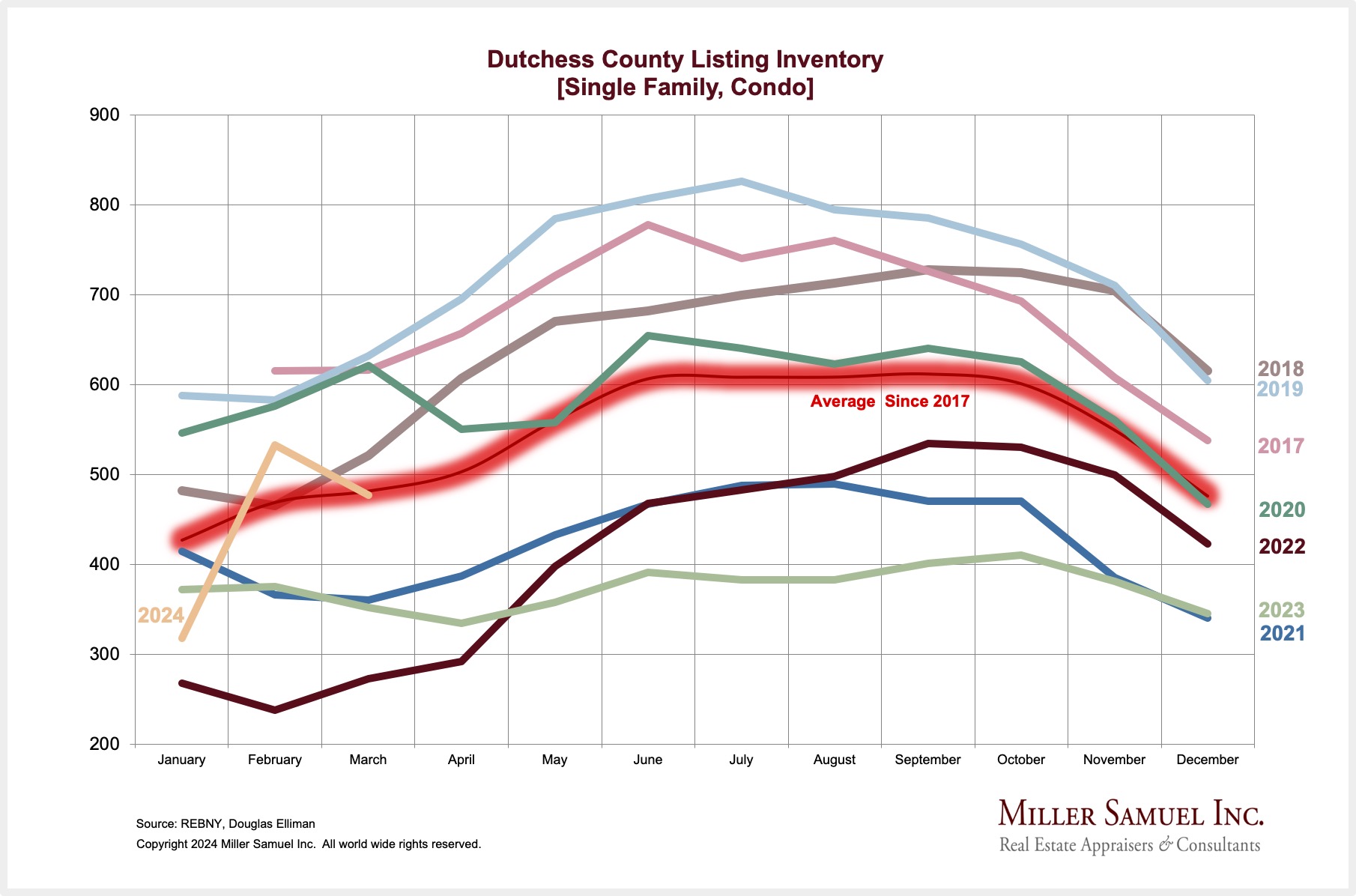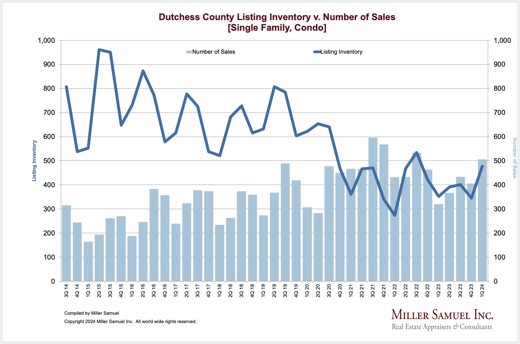 Dutchess County Listing Inventory v. Number of Sales [Single Family, Condo]