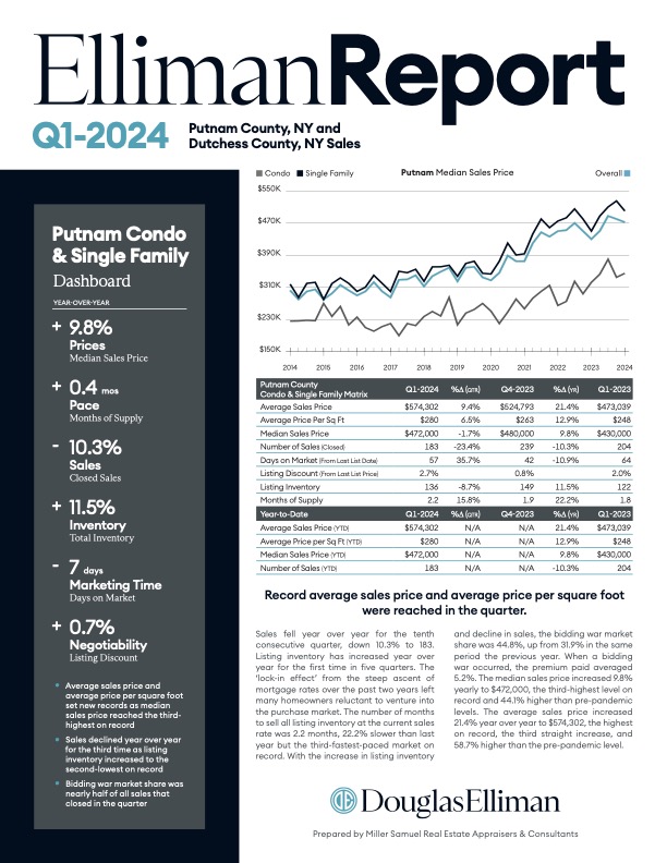 Elliman Report: Putnam & Dutchess Sales 1Q 2024