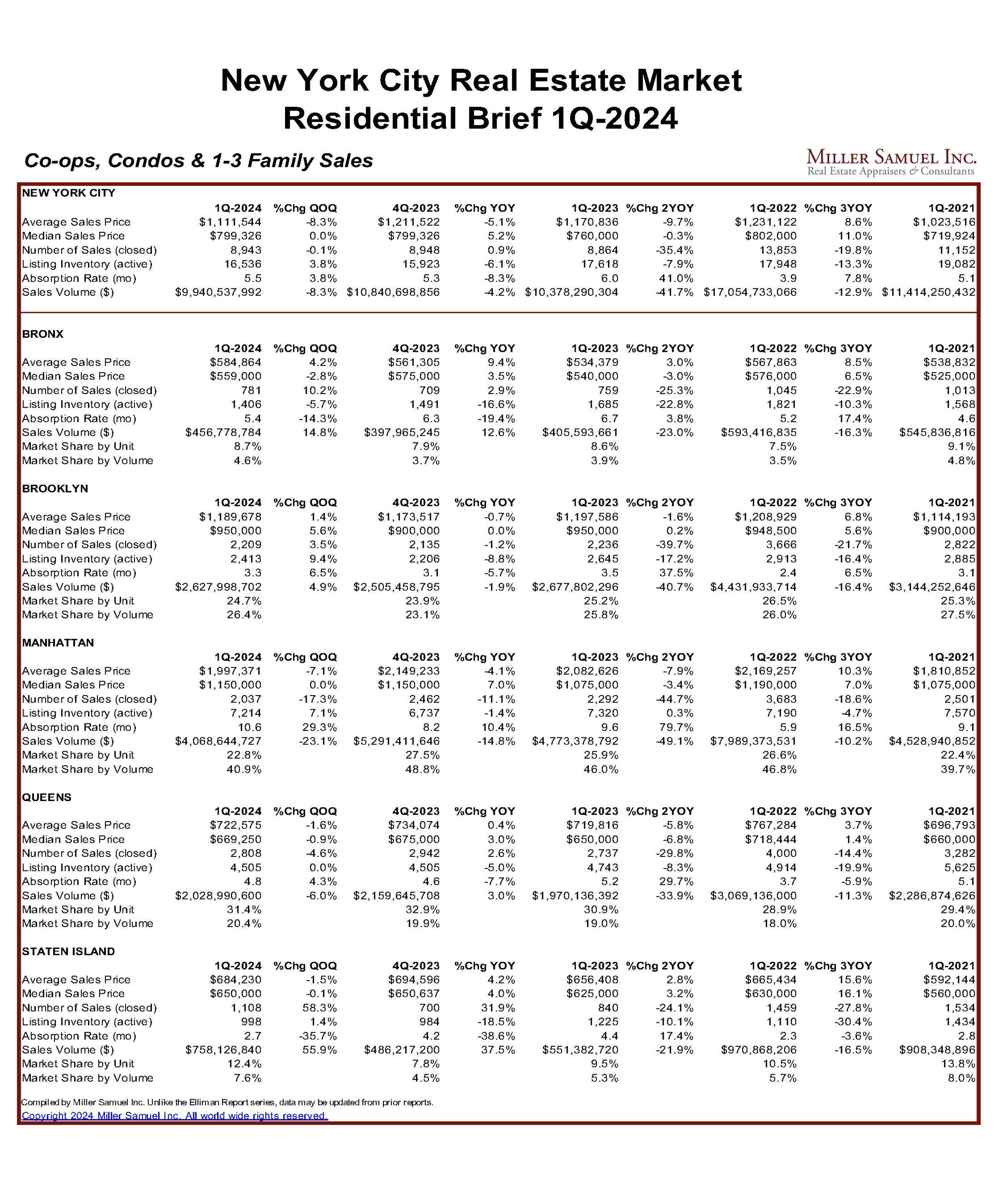 Miller Samuel New York City Market Brief 1Q 2024 [3 Year Comparison]