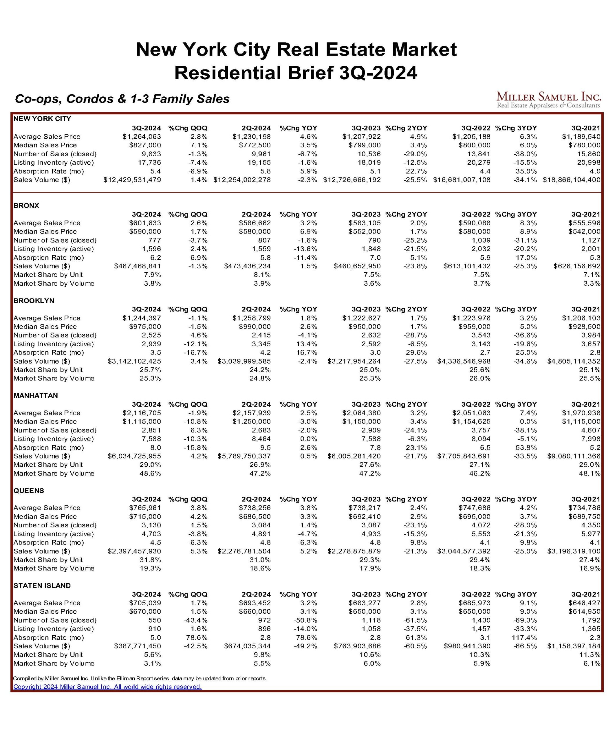 Miller Samuel New York City Market Brief 3Q 2024 [3 Year Comparison]