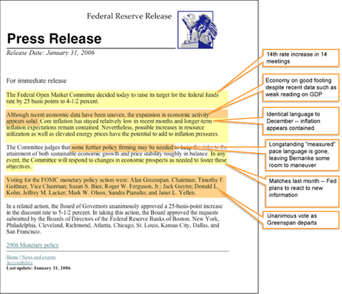 One thing I will miss about Greenspan is the intense analysis of his vocabulary. Just think about what the WSJ has done here. It has dissected a one page letter to generate clues about future rate moves. This is insane, but necessary.