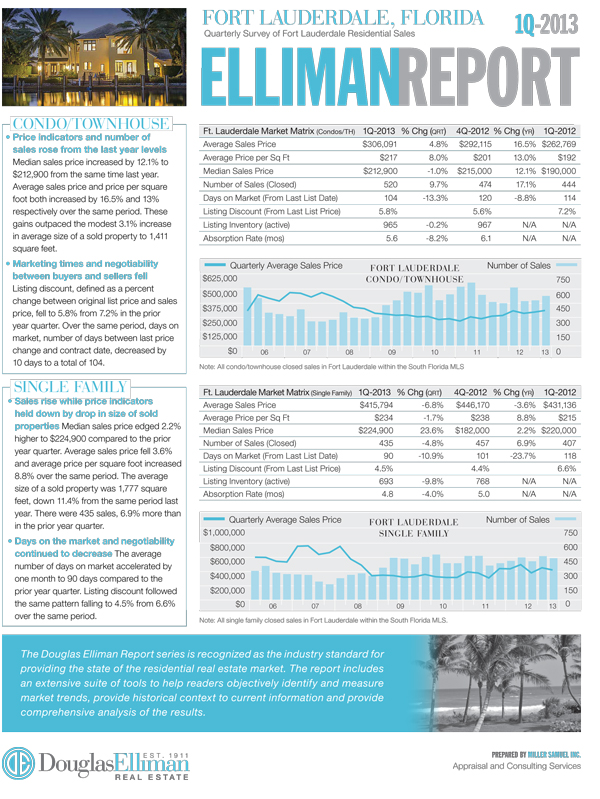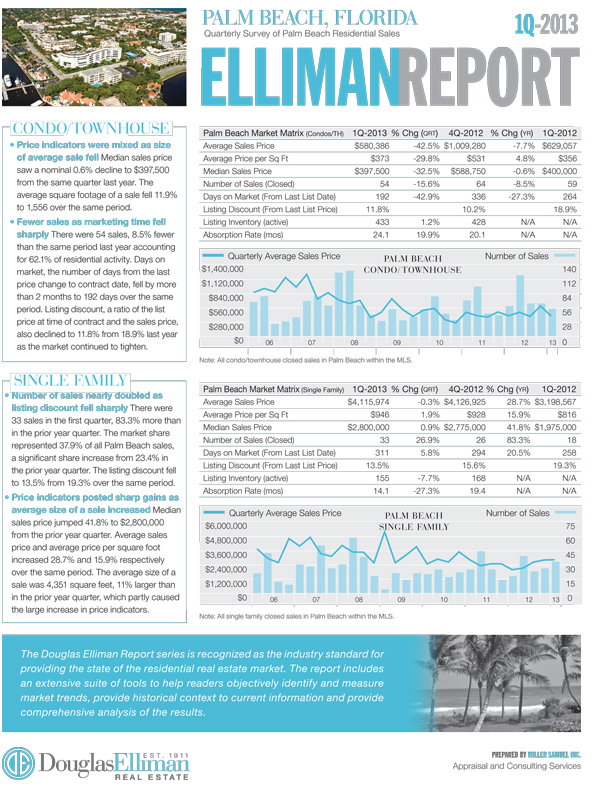 We recently completed the 1Q 2013 South Florida market report series for Douglas Elliman. These markets include Miami, Boca Raton, Fort Lauderdale and Palm Beach.