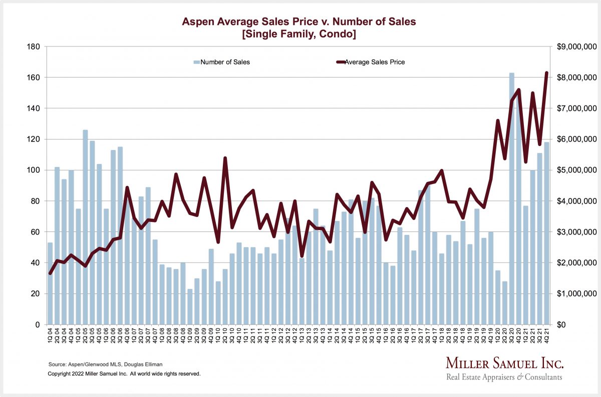 Aspen Average Sales Price v. Number of Sales [Single Family, Condo]