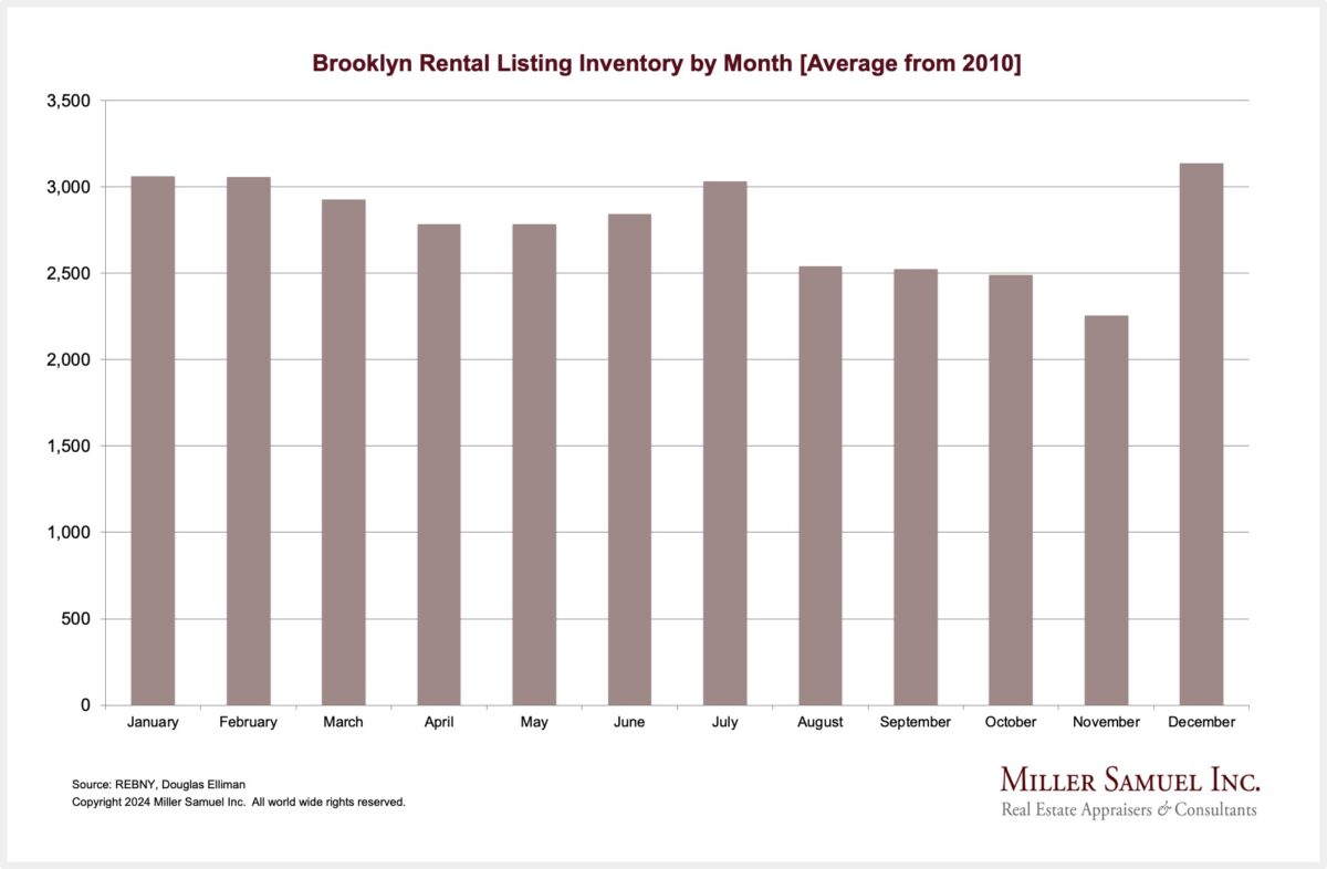 Brooklyn Rental Listing Inventory by Month [Average from 2010]