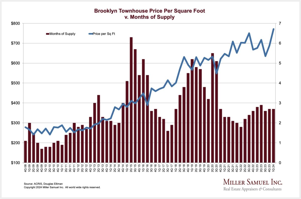 Brooklyn Townhouse Price per Square Foot v. Months of Supply