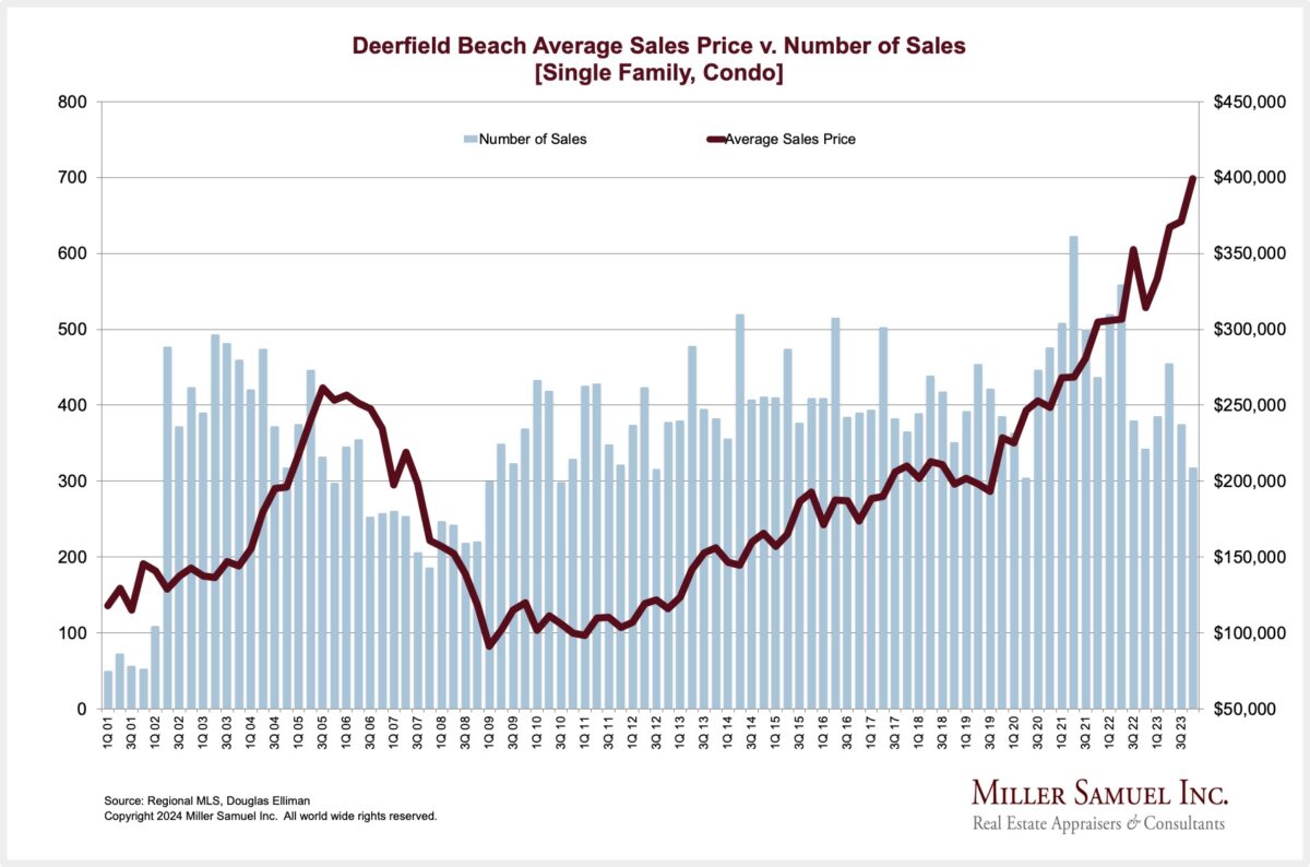Deerfield Beach Average Sales Price v. Number of Sales [Single Family, Condo]