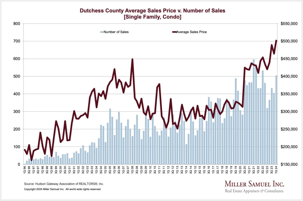 Dutchess County Average Sales Price v. Number of Sales [Single Family, Condo]