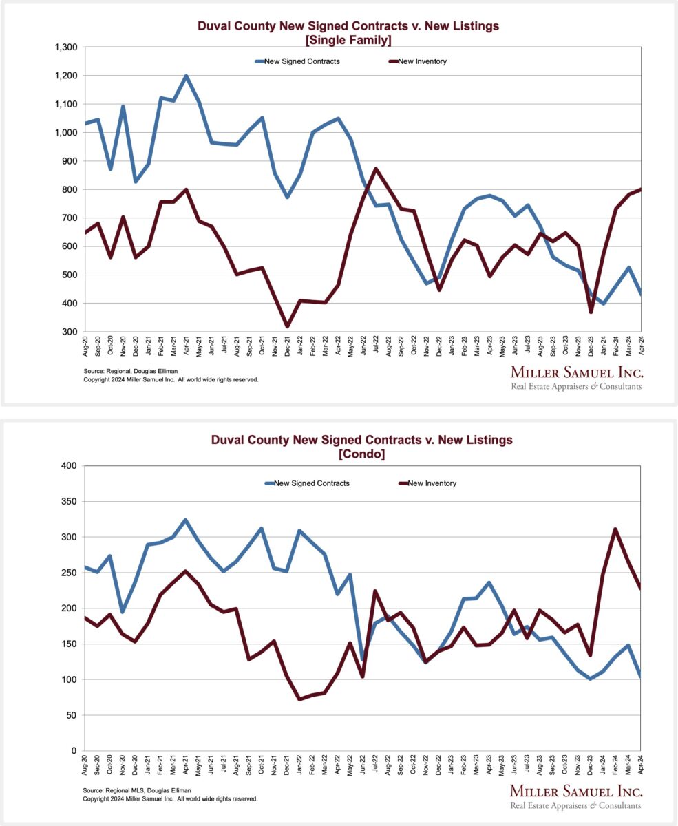 Duval County New Signed Contracts v. New Listings – By Property Type