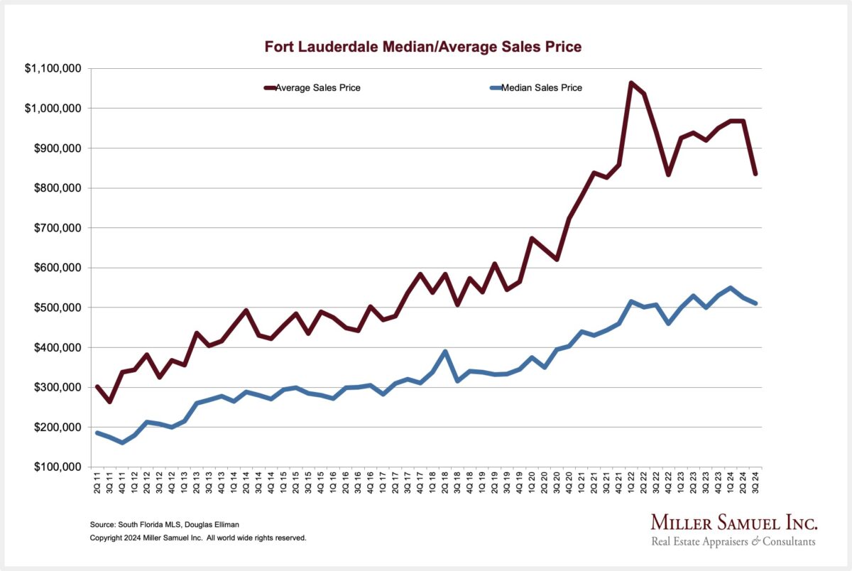 Fort Lauderdale Percent Spread Between Median/Average Sales Price