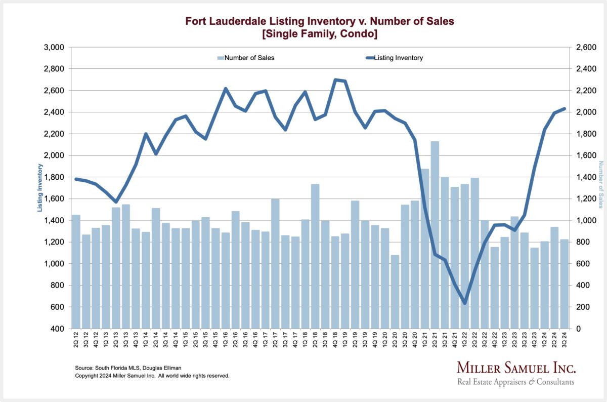 Fort Lauderdale Listing Inventory v. Number of Sales [Single Family, Condo]