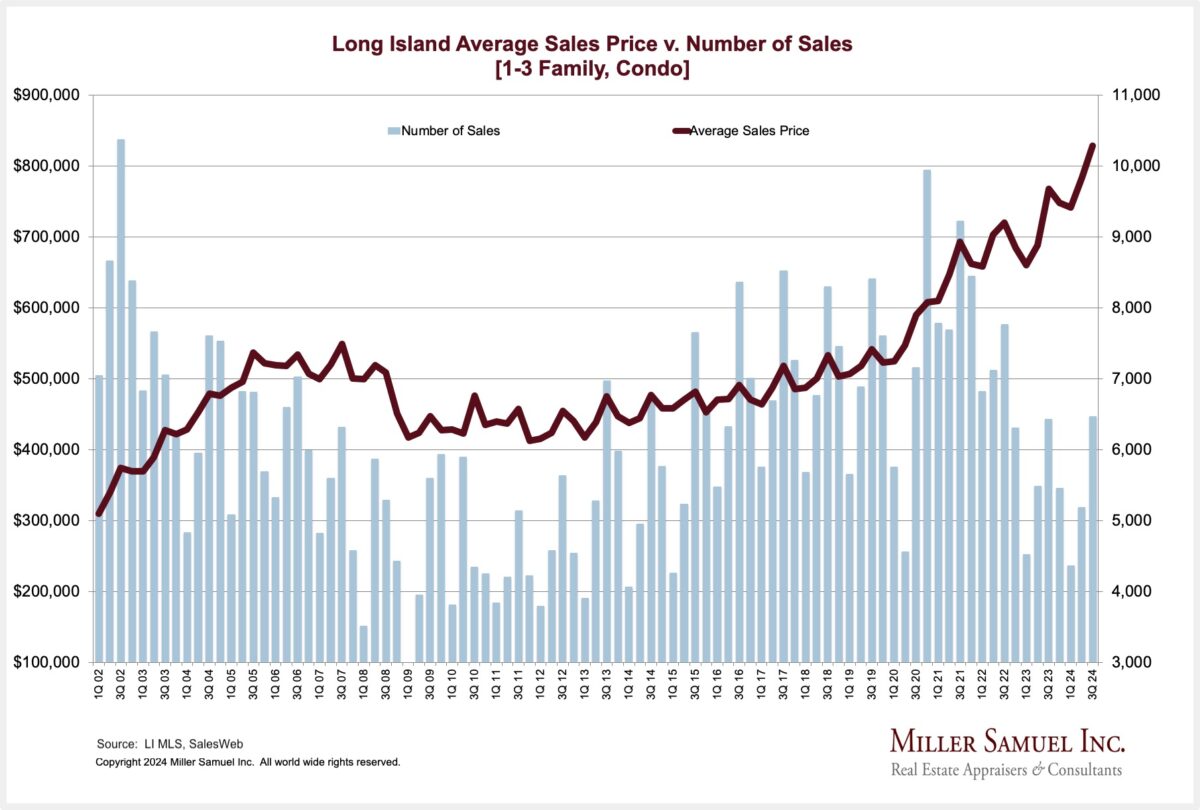 Long Island Average Sales Price v. Number of Sales [Single Family, Condo]