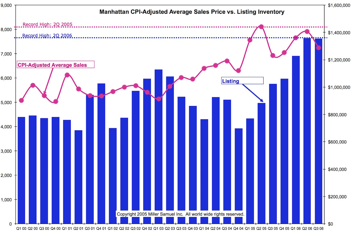 Manhattan CPI-Adjusted Average Sales Price vs. Listing Inventory