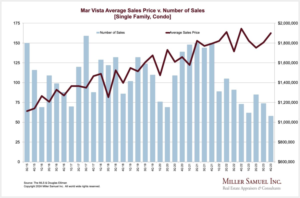 Mar Vista Average Sales Price v. Number of Sales [Single Family, Condo]