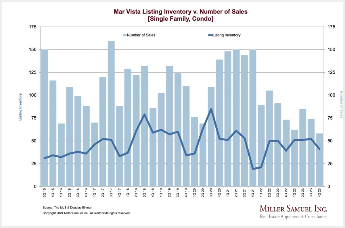 Mar Vista Listing Inventory v. Number of Sales [Single Family, Condo]