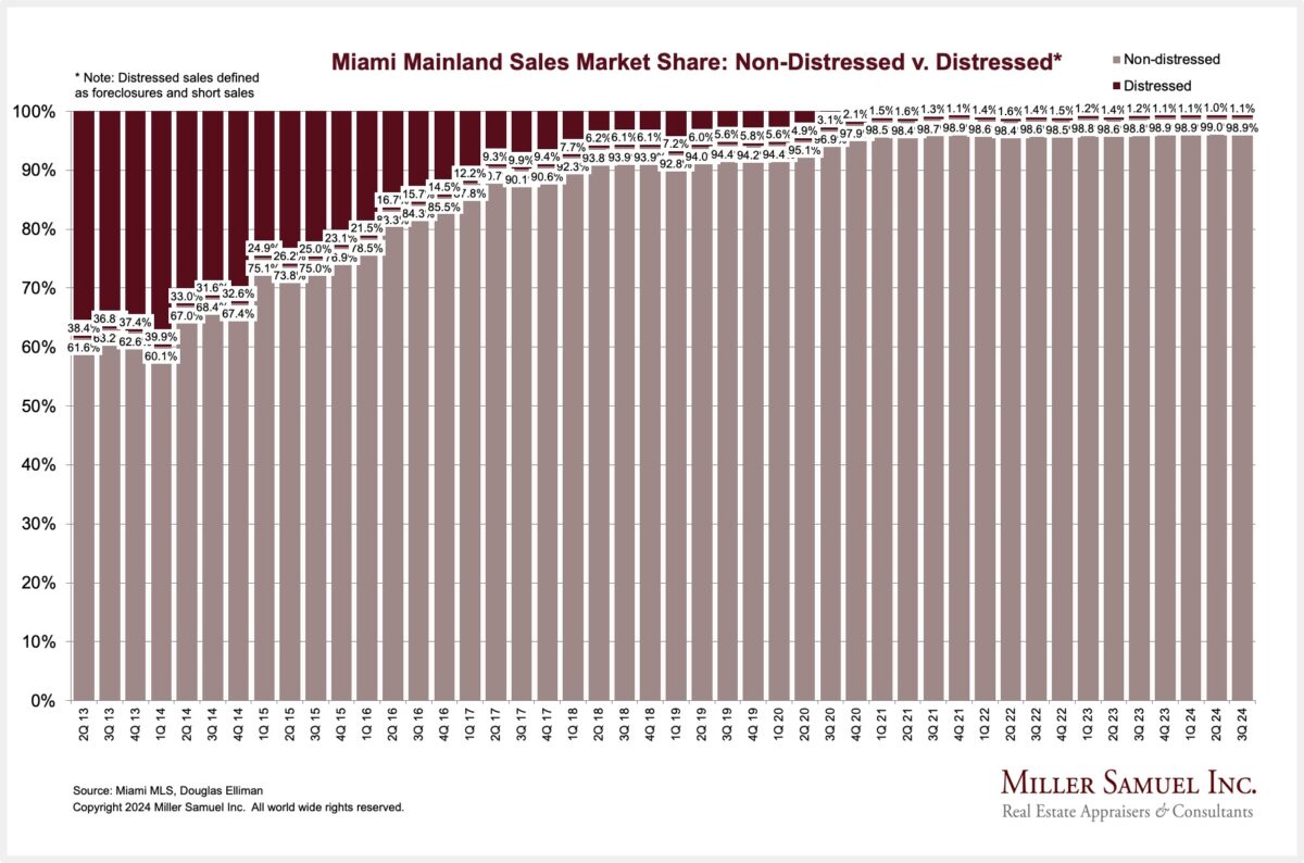 Miami Mainland Sales Market Share: Non-distressed v. Distressed*