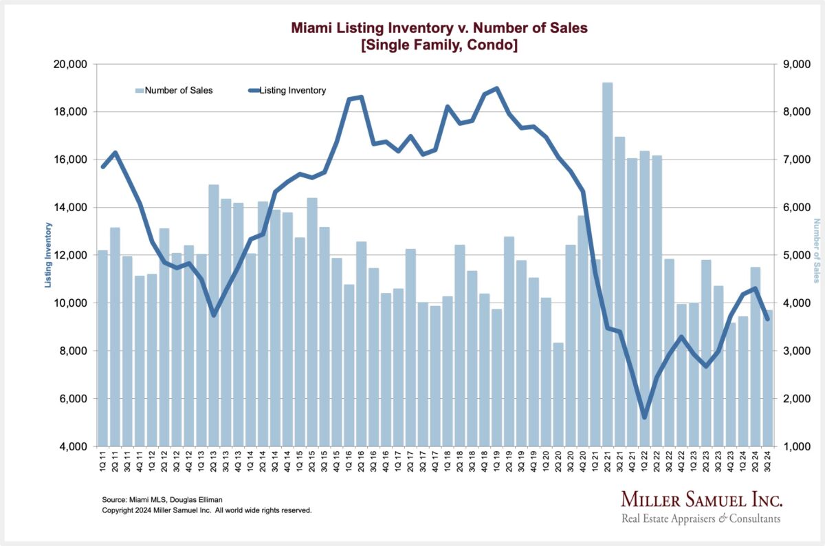 Miami Listing Inventory v. Number of Sales [Single Family, Condo]