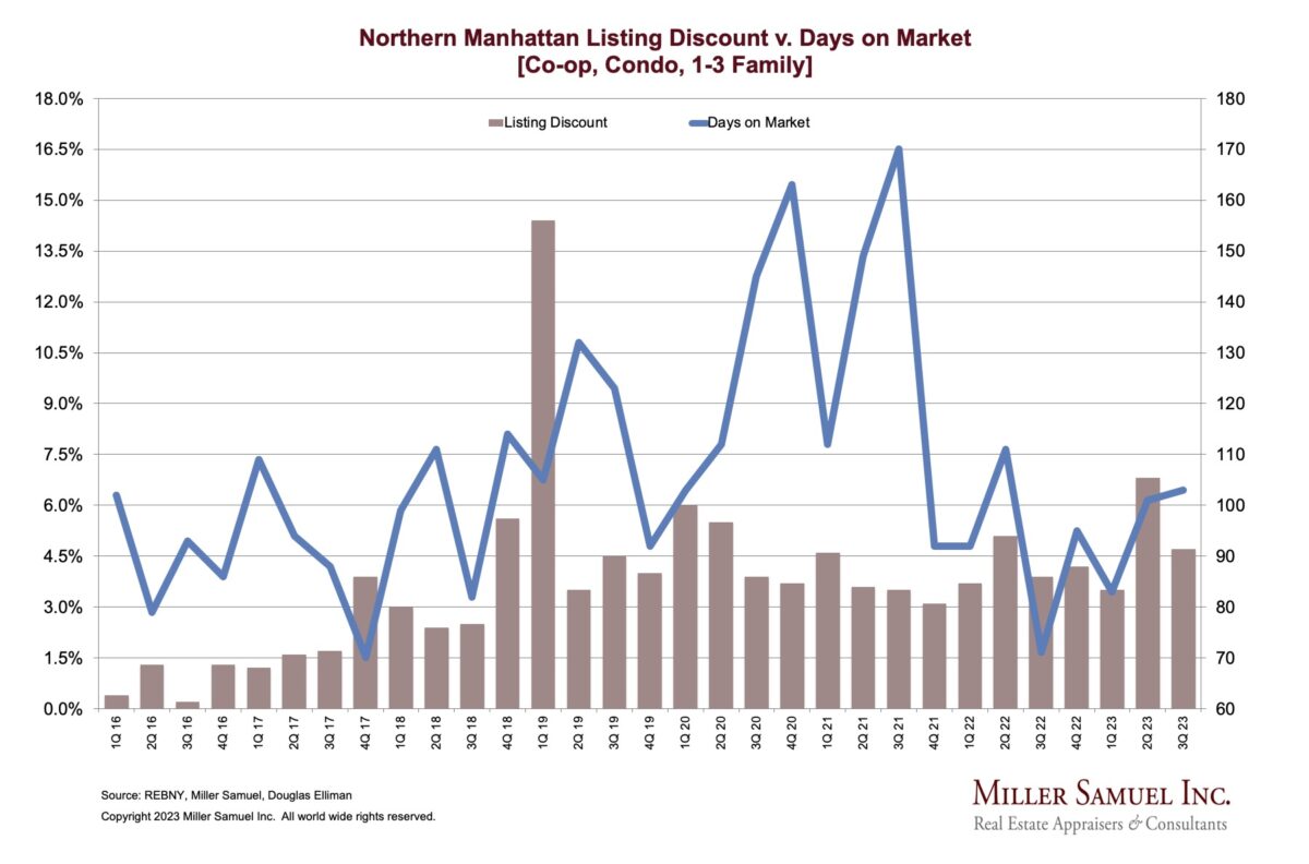 Northern Manhattan Listing Discount v. Days on Market [Co-op, Condo, 1-3 Family]