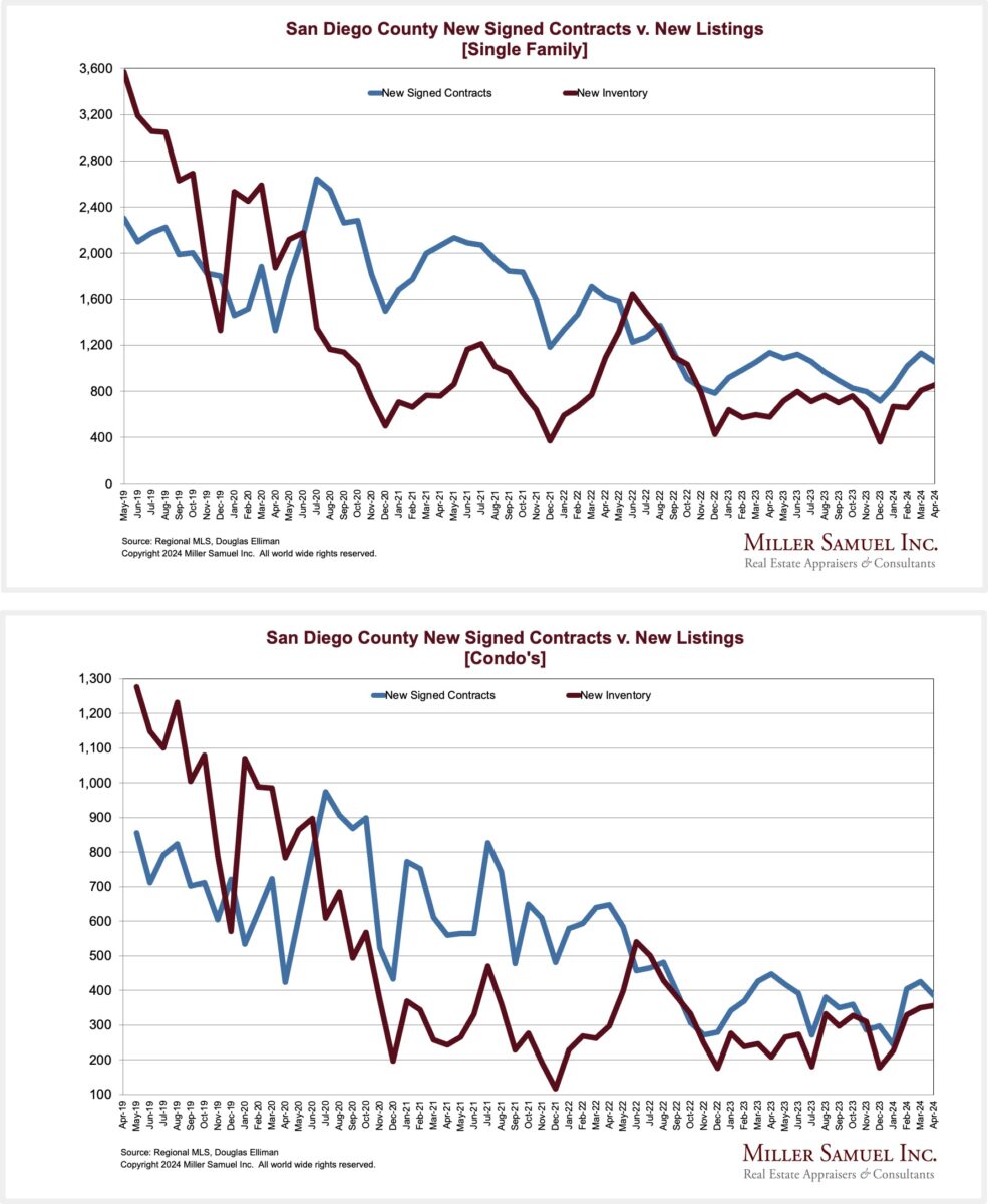 San Diego County New Signed Contracts v. New Listings – By Property Type