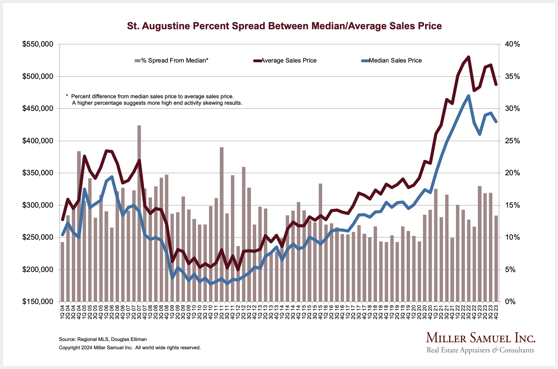 St. Augustine Percent Spread Between Median/Average Sales Price