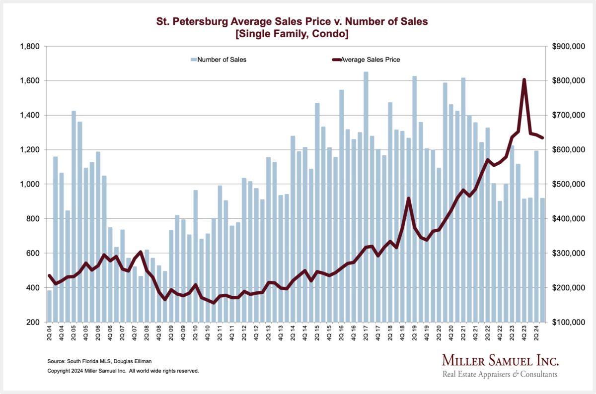 St. Petersburg Average Sales Price v. Number of Sales [Single Family, Condo]