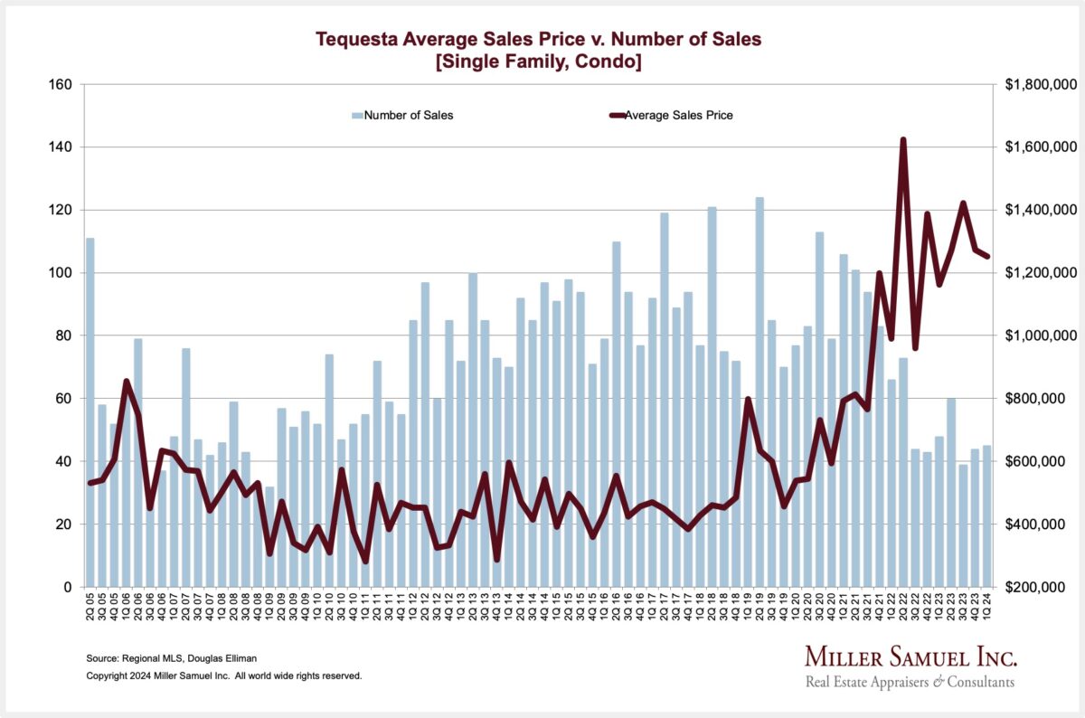Tequesta Average Sales Price v. Number of Sales [Single Family, Condo]