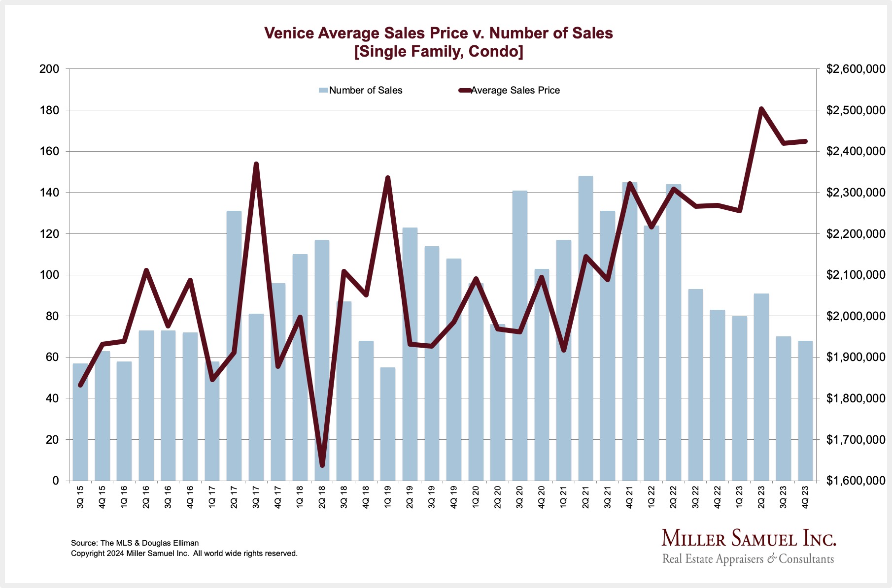 Venice Average Sales Price v. Number of Sales [Single Family, Condo]