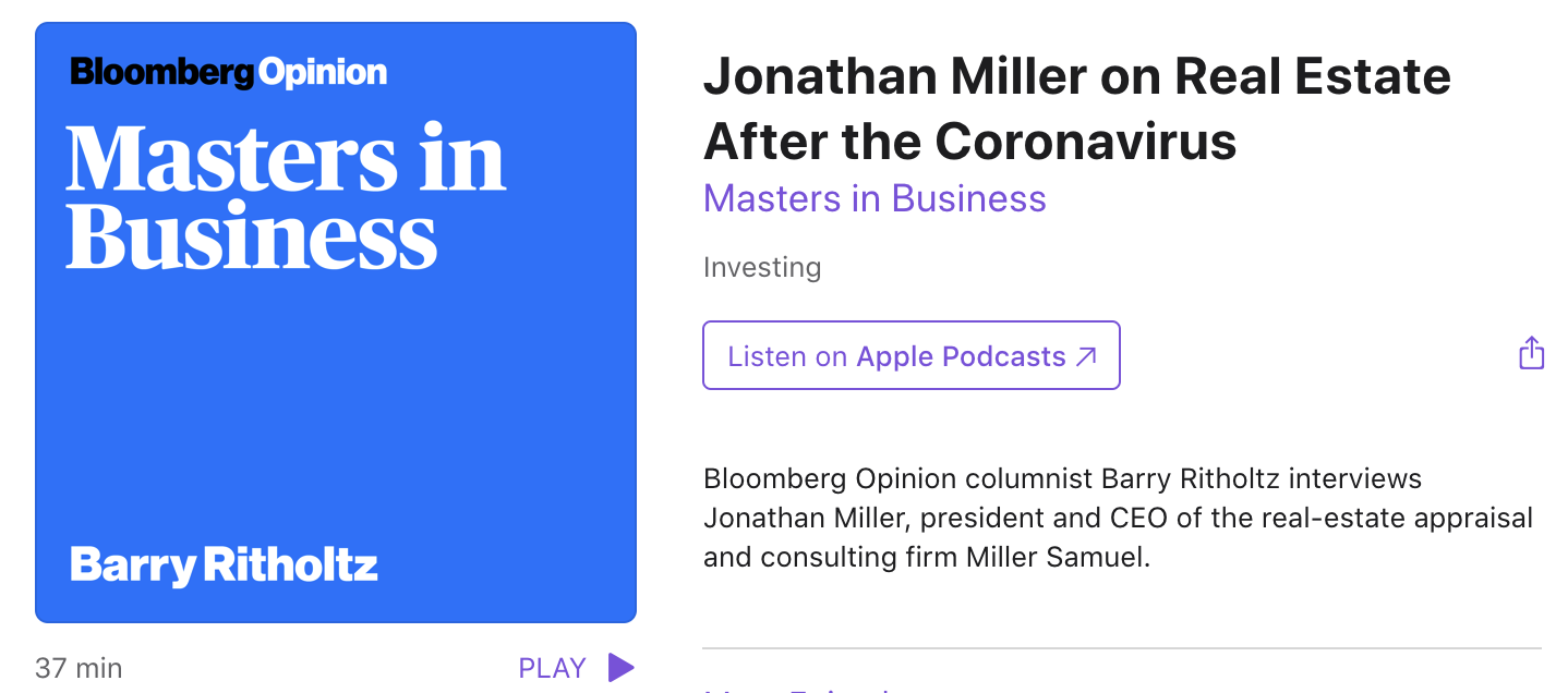 Bloomberg Radio’s Barry Ritholtz – Masters in Business Show: Jonathan Miller on Real Estate After the Coronavirus