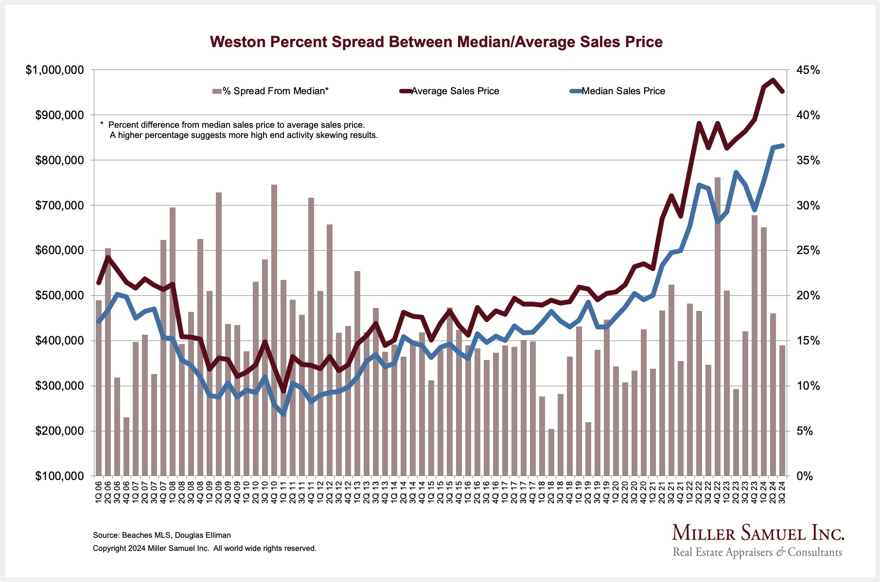 Weston Percent Spread Between Median/Average Sales Price
