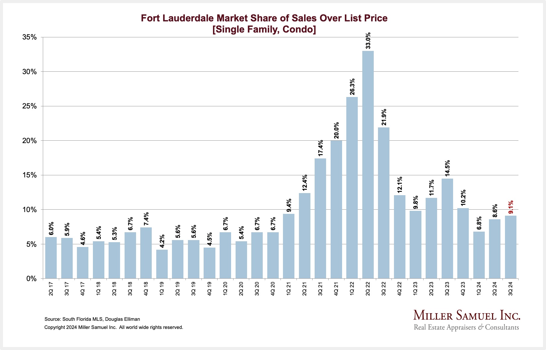 Fort Lauderdale Market Share of Sales Over List Price [Single Family, Condo]