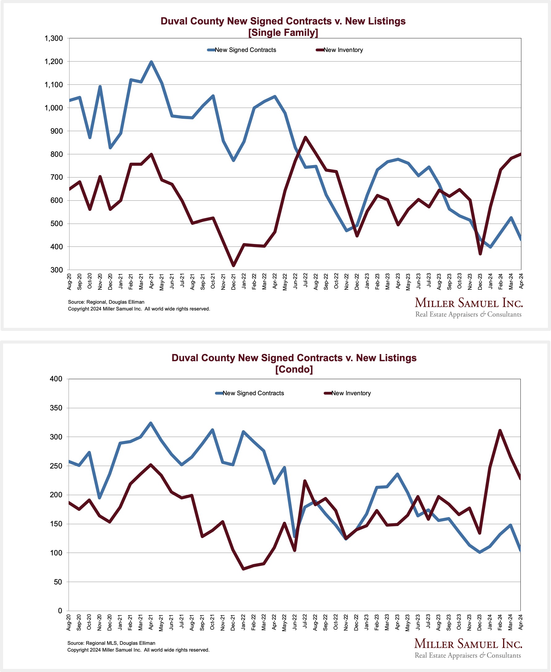 Duval County New Signed Contracts v. New Listings – By Property Type