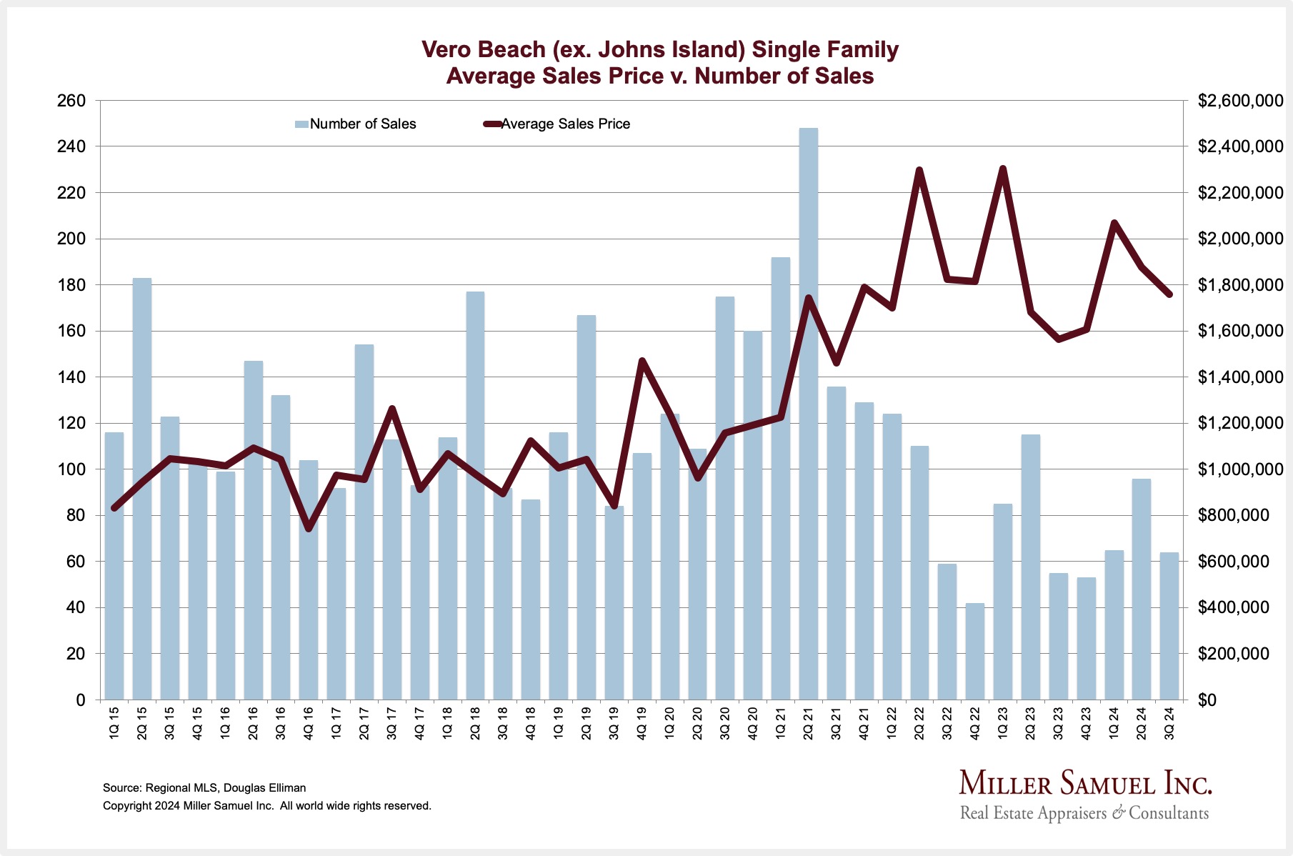 Vero Beach (ex. Johns Island) Single Family Average Sales Price v. Number of Sales
