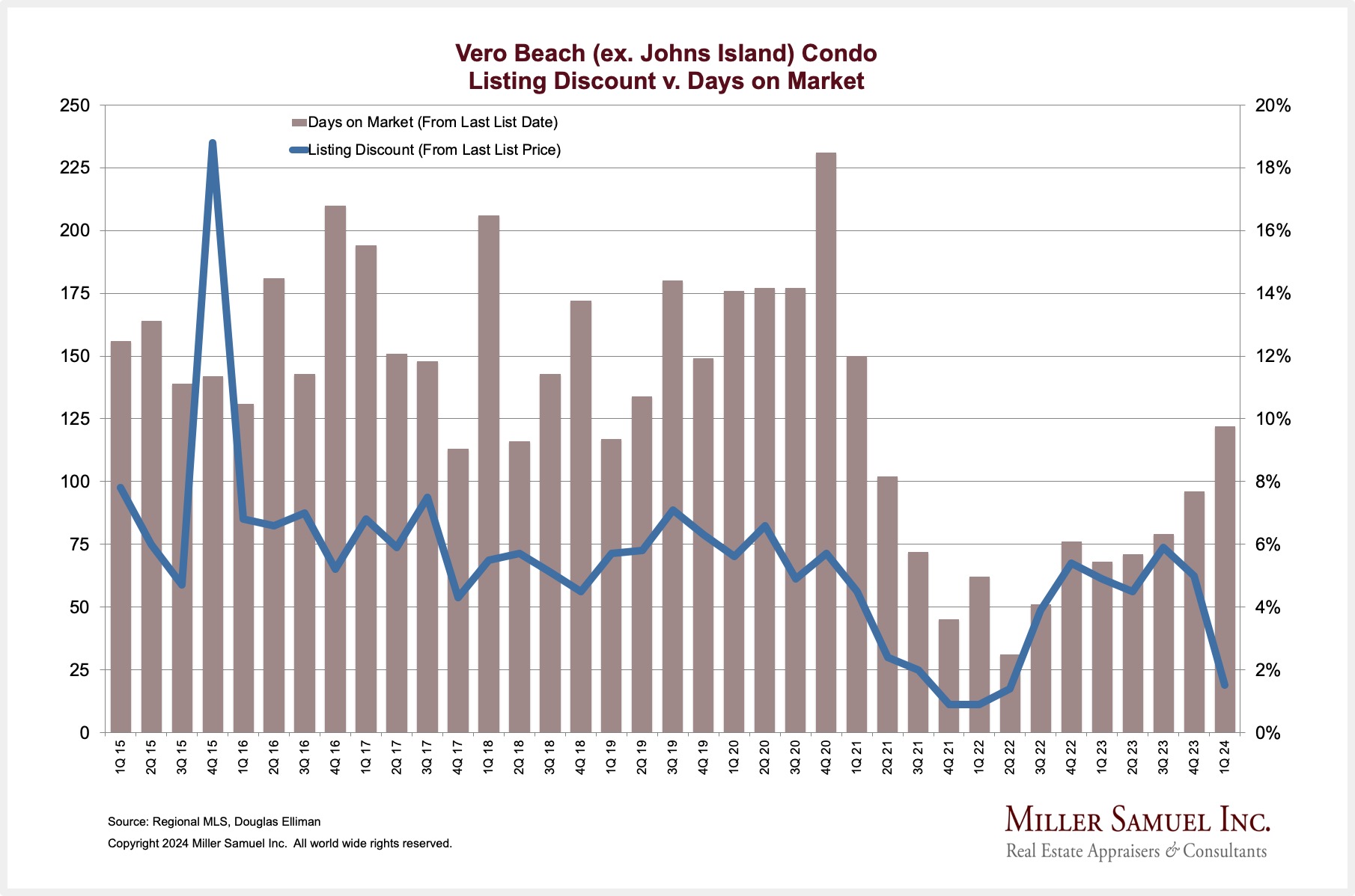 Vero Beach (ex. Johns Island) Condo Listing Discount v. Days on Market
