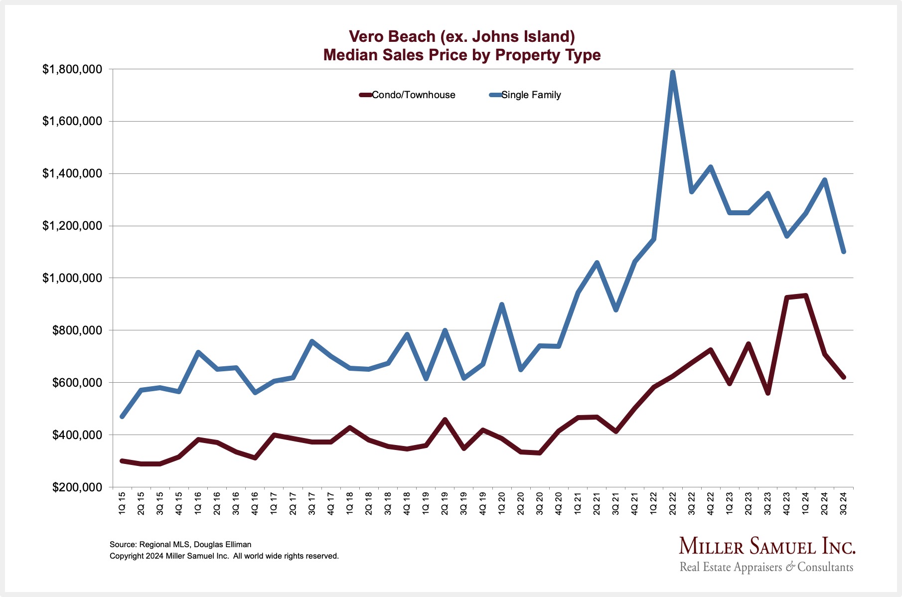 Vero Beach (ex. Johns Island) Median Sales Price by Property Type