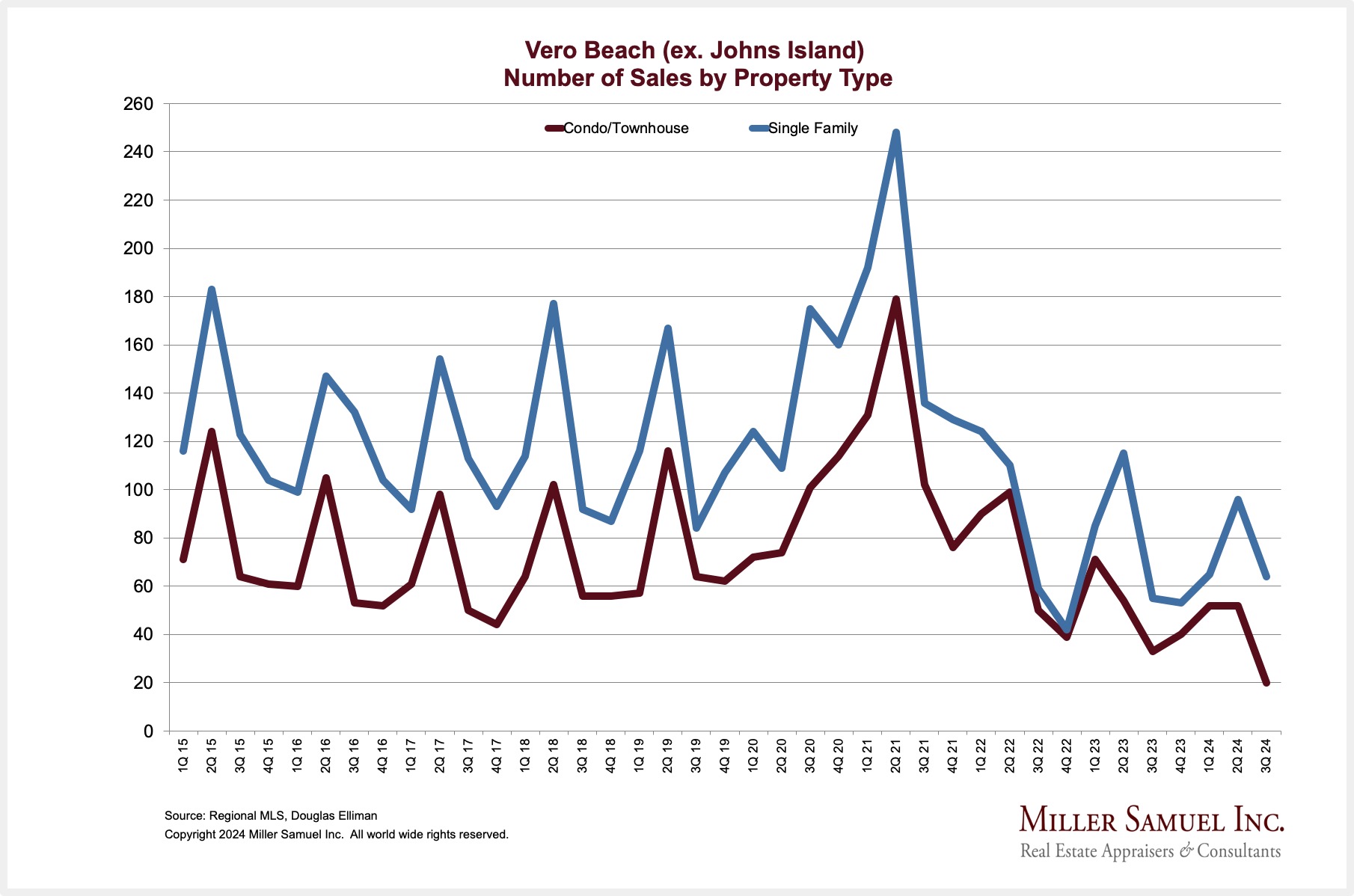 Vero Beach (ex. Johns Island) Number of Sales by Property Type