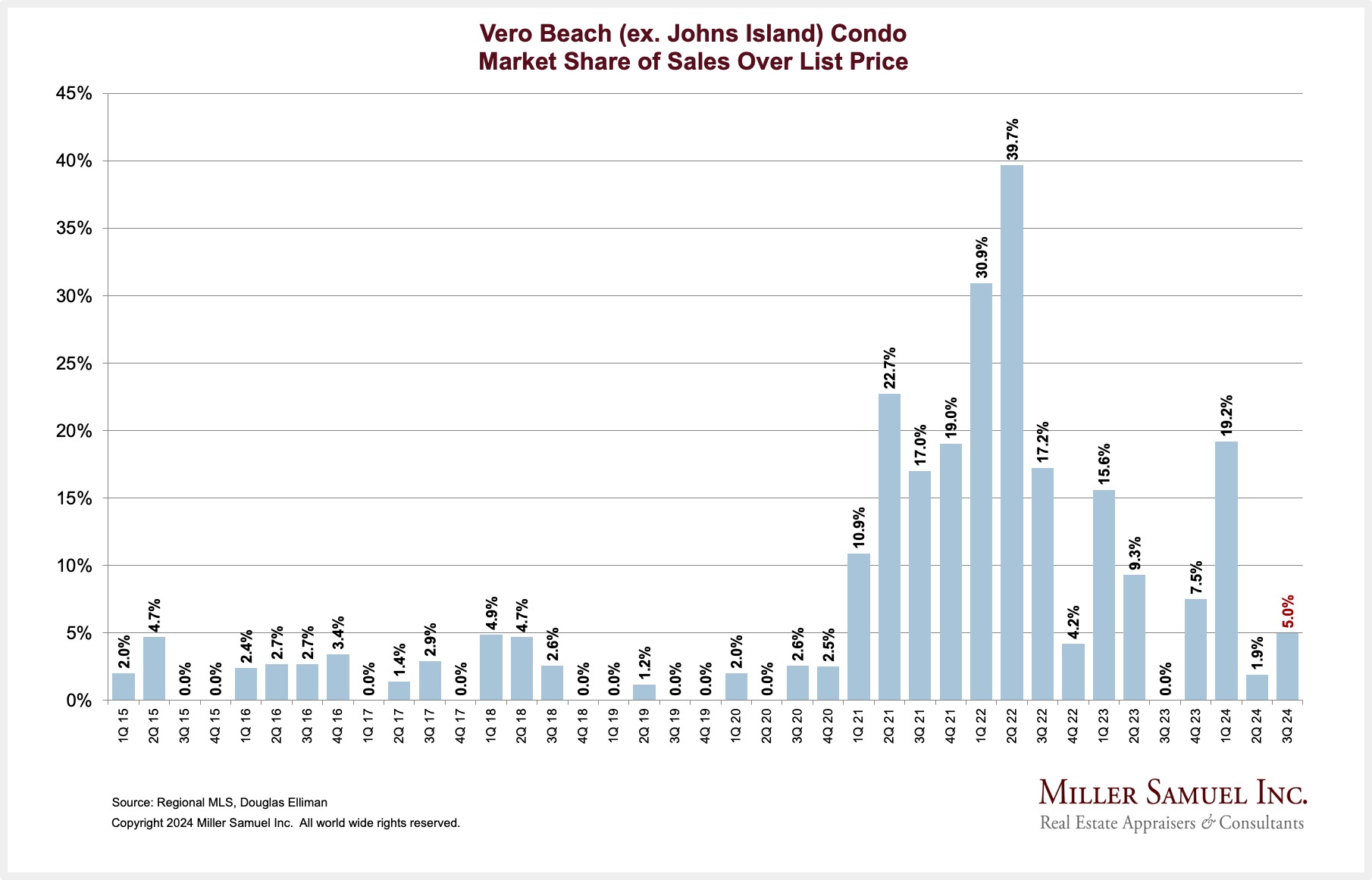 Vero Beach (ex. Johns Island) Condo Market Share of Sales Over List Price
