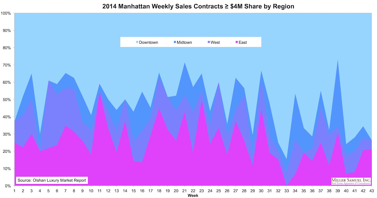 2014 Manhattan Weekly Sales Contracts ≥ $4M Share by Region