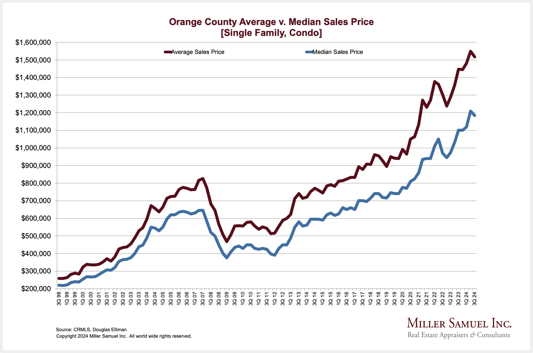 Orange County Average v. Median Sales Price [Single Family, Condo]