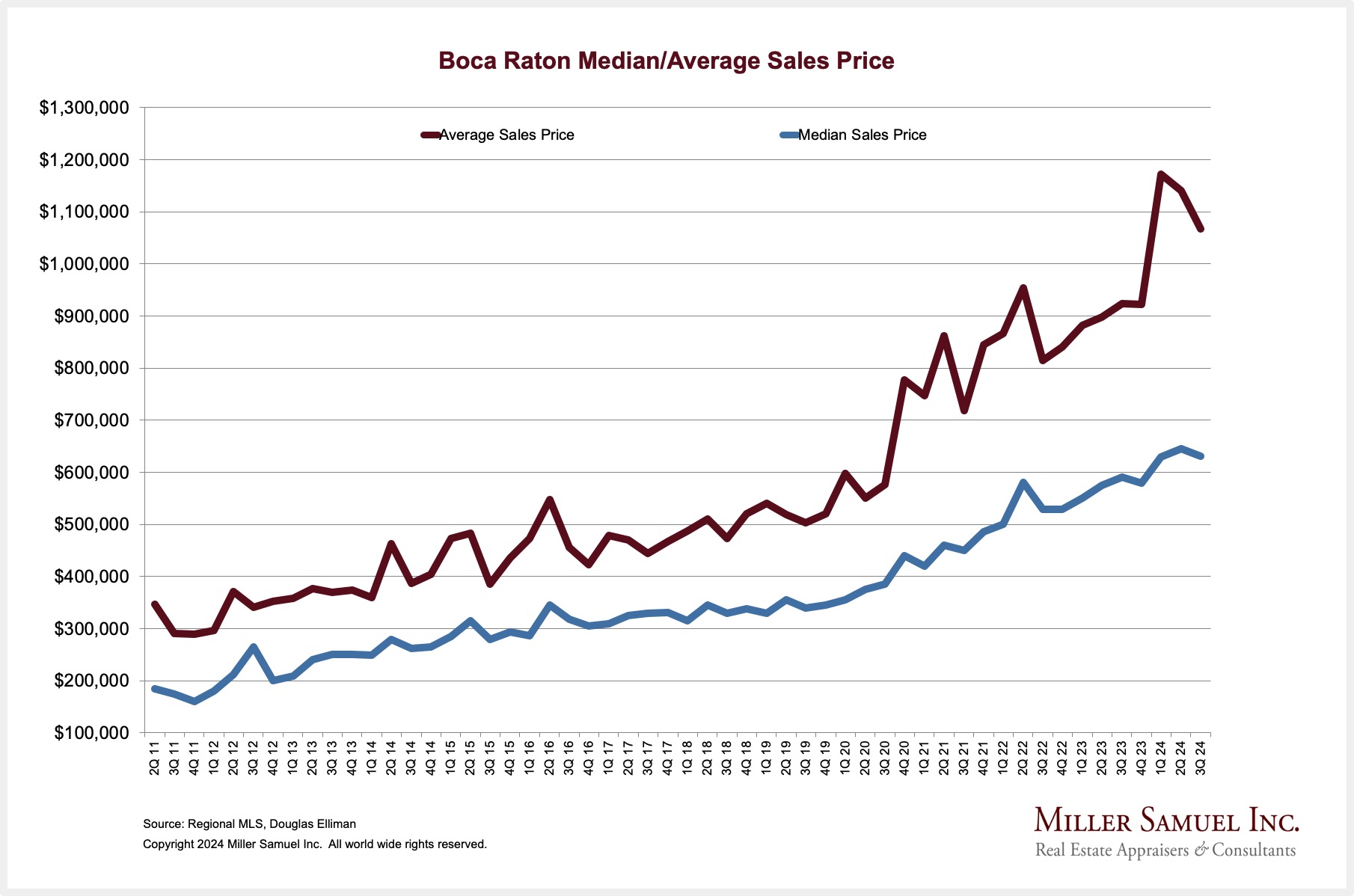 Boca Raton Percent Spread Between Median/Average Sales Price