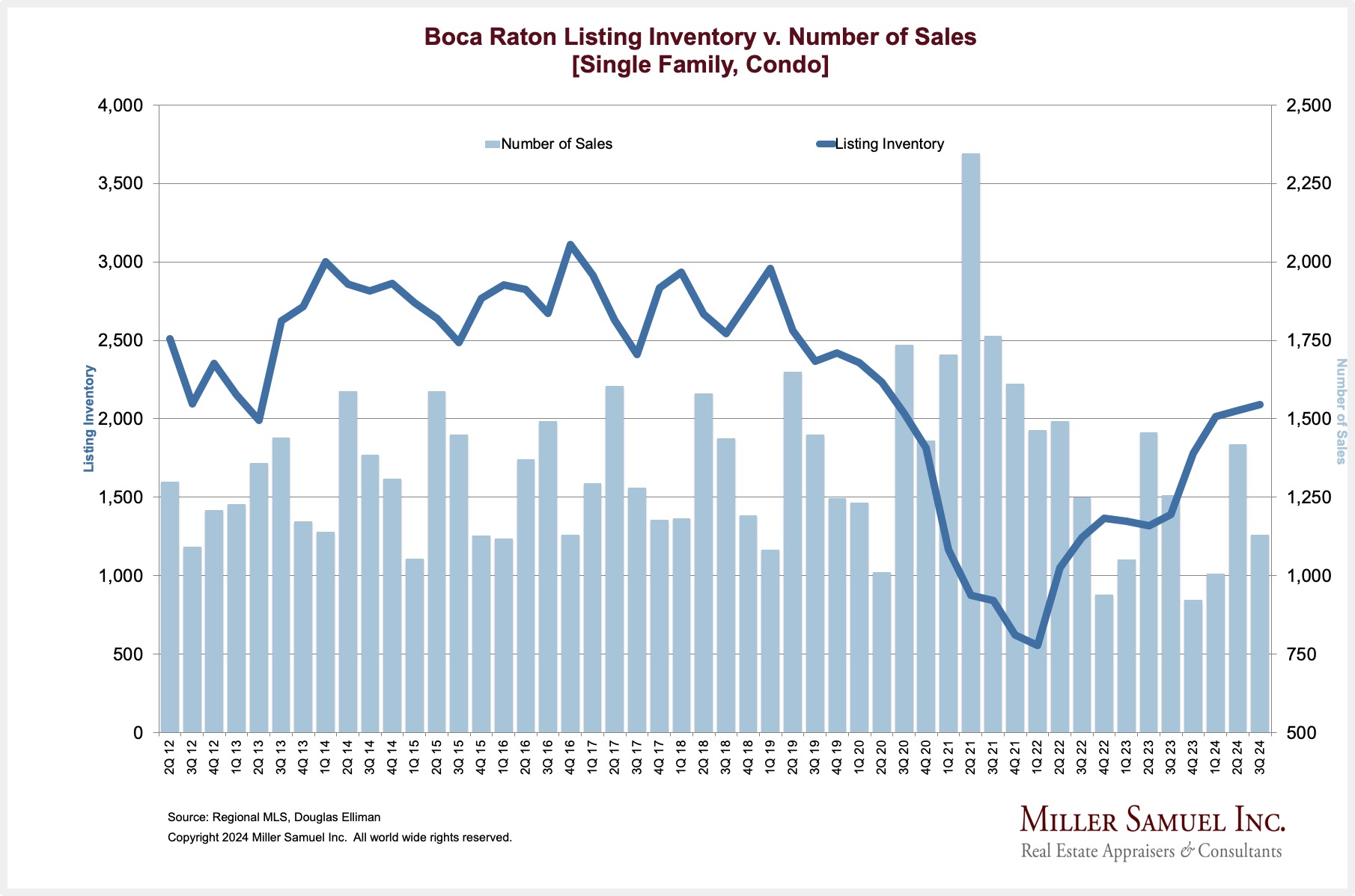 Boca Raton Listing Inventory v. Number of Sales [Single Family, Condo]