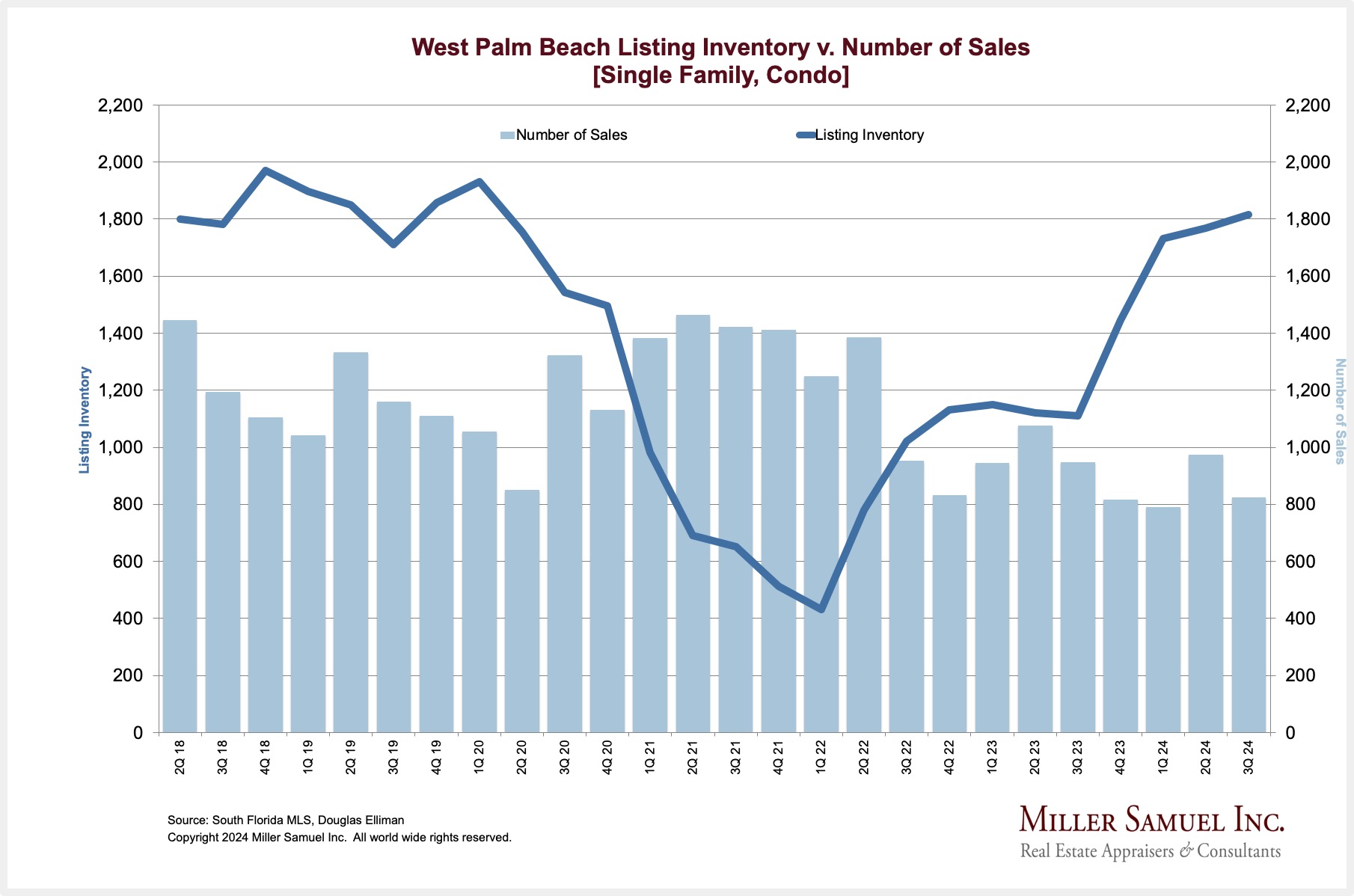 West Palm Beach Listing Inventory v. Number of Sales [Single Family, Condo]