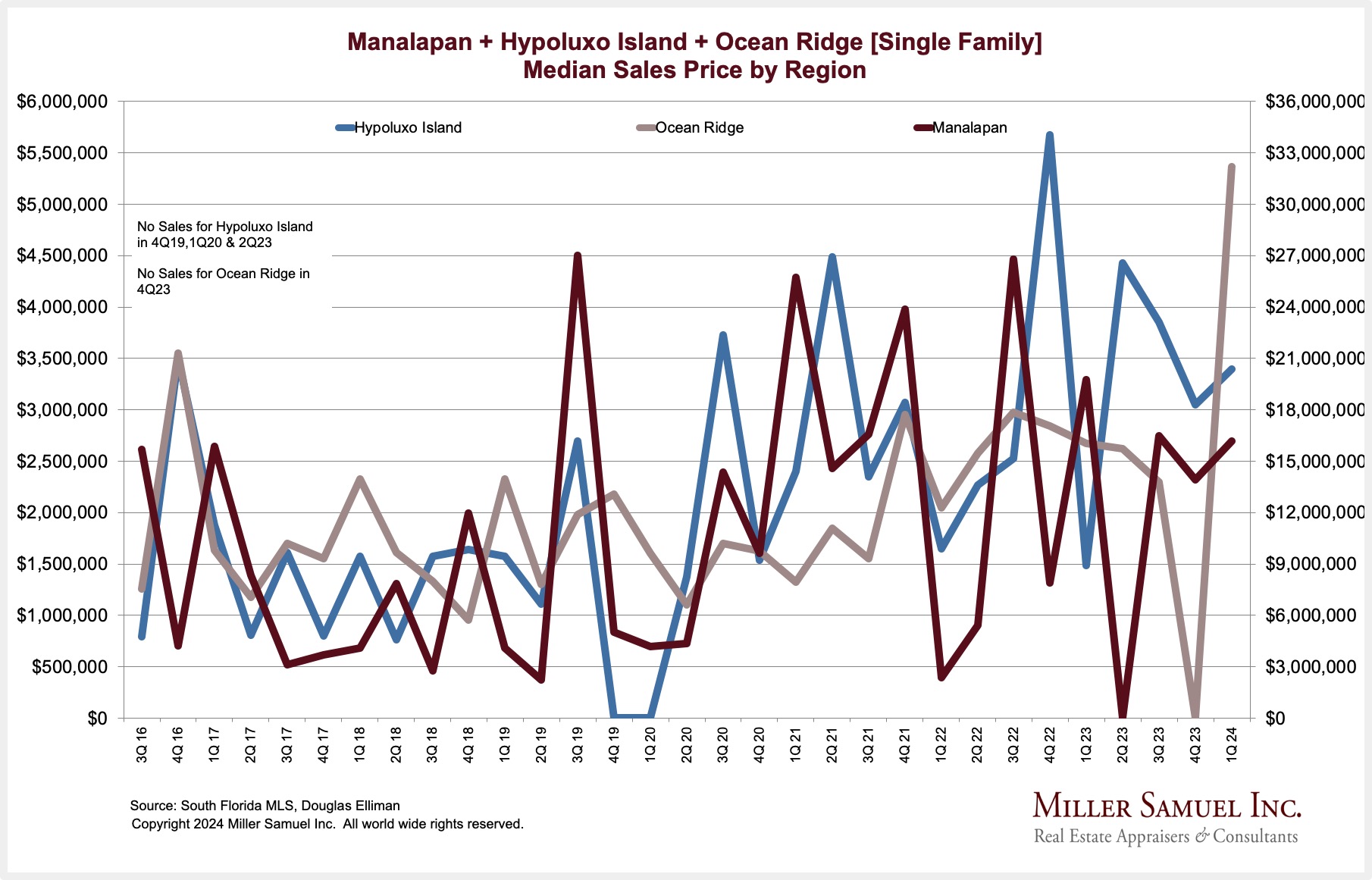 Manalapan + Hypoluxo Island + Ocean Ridge [Single Family] Median Sales Price by Region
