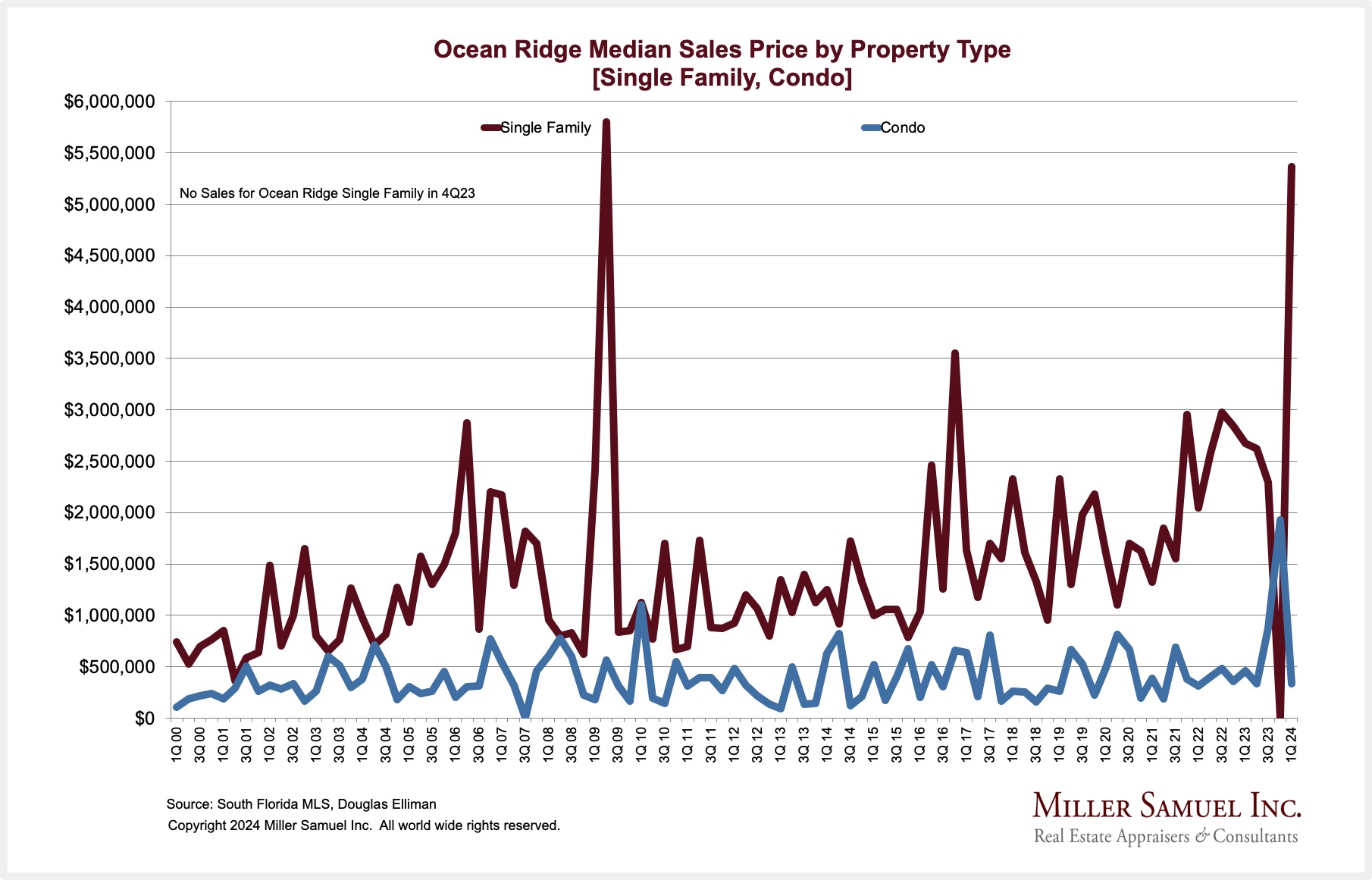 Ocean Ridge Median Sales Price by Property Type [Single Family, Condo]