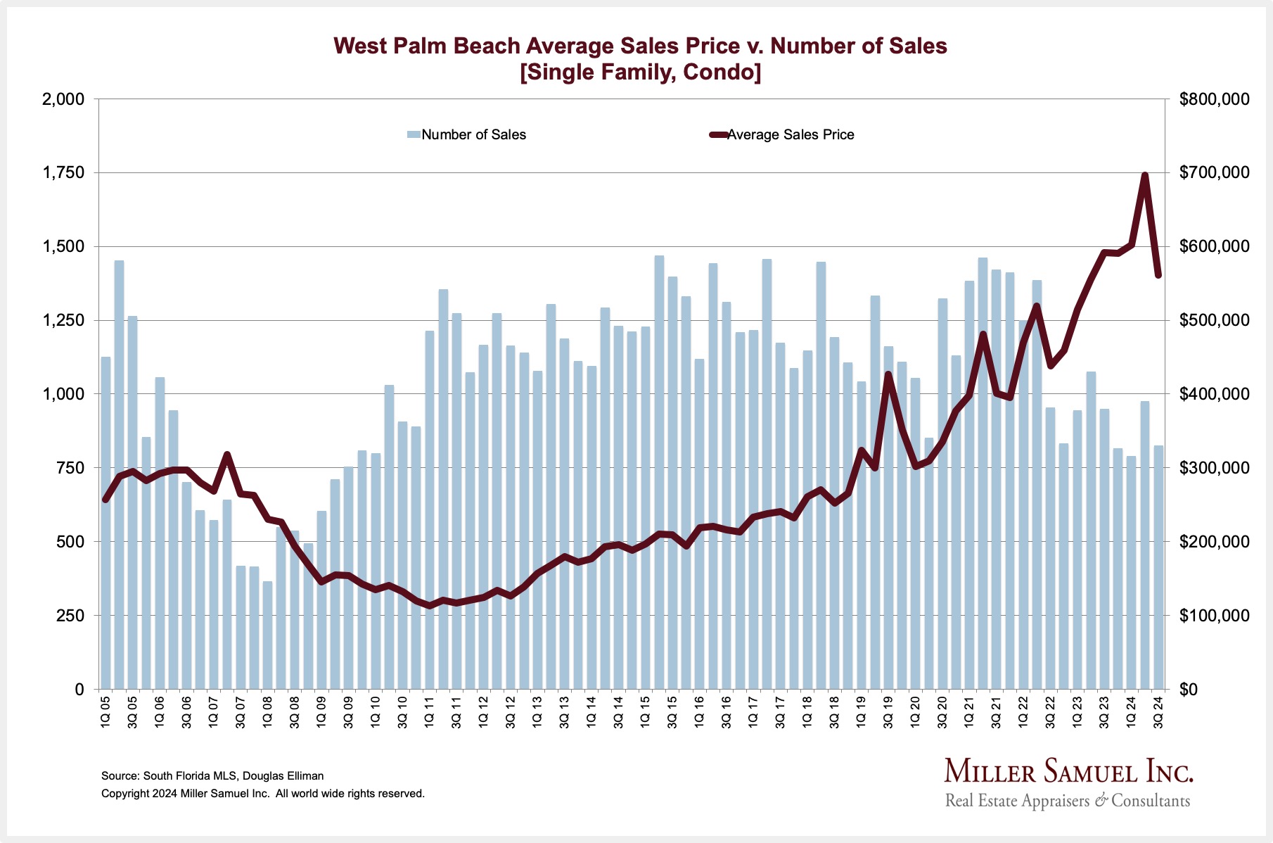 West Palm Beach Average Sales Price v. Number of Sales [Single Family, Condo]