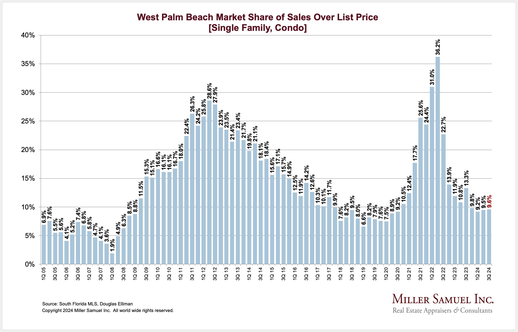 West Palm Beach Market Share of Sales Over List Price [Single Family, Condo]