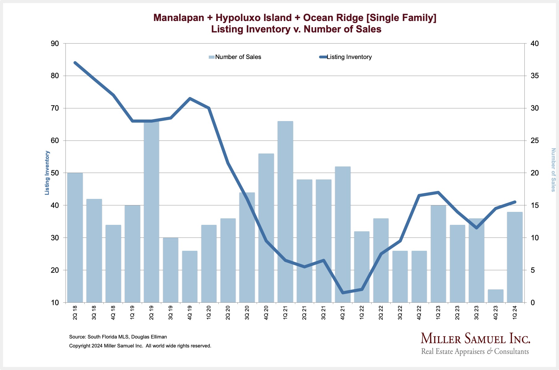 Manalapan + Hypoluxo Island + Ocean Ridge [Single Family] Listing Inventory v. Number of Sales