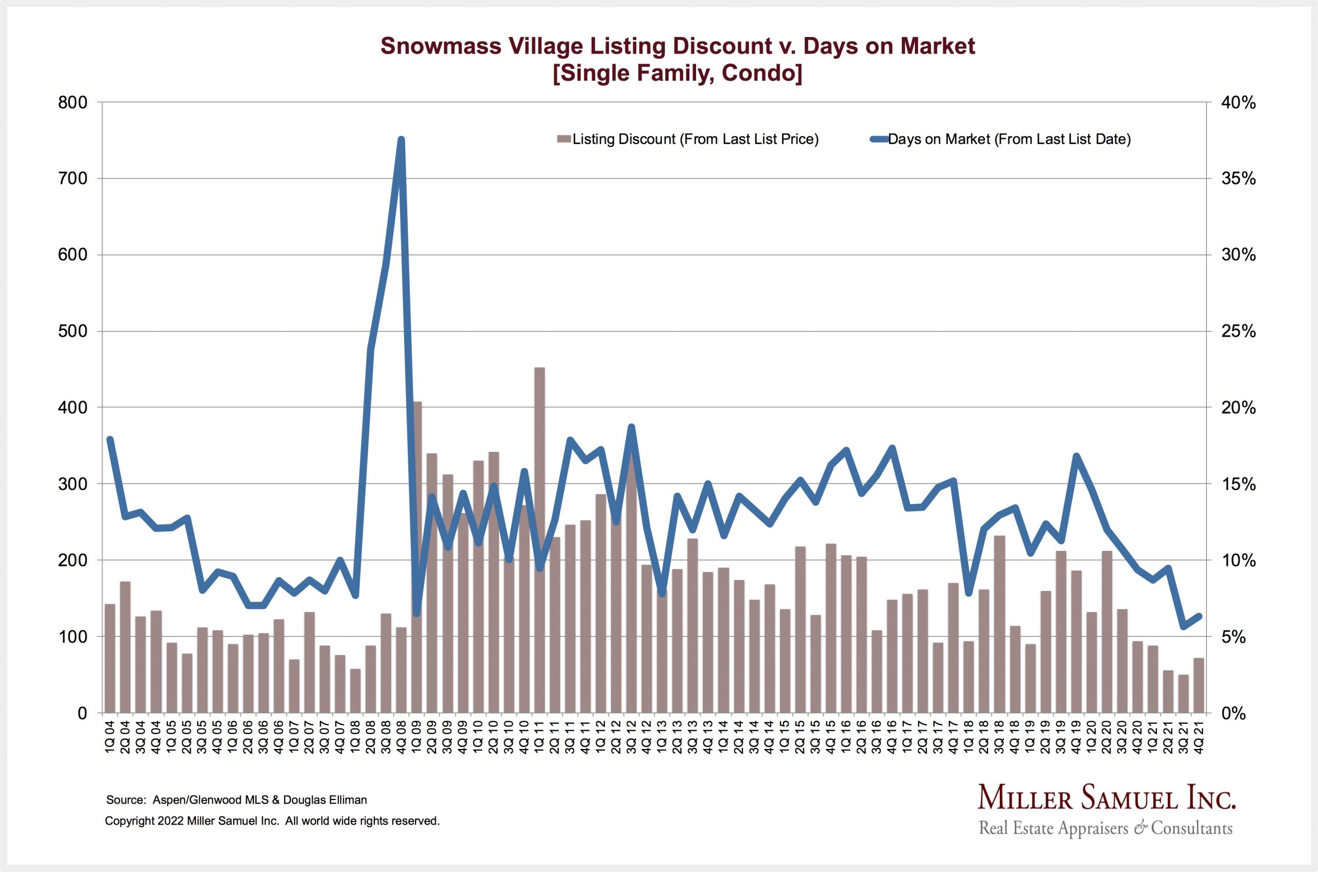 Snowmass Village Listing Discount v. Days on Market [Single Family, Condo]