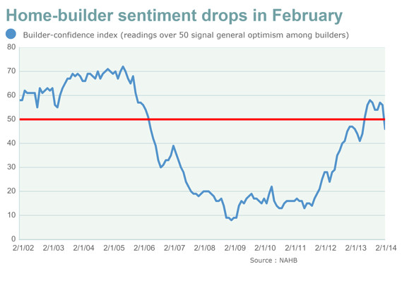 While weather played a role and probably amounts to more of a short term blip, I think the larger concern is the outlook over the next 6 months with reduced affordability (higher rates but still historically low) and the bottoming of existing home inventory in 2013 providing additional listing competition in some markets.