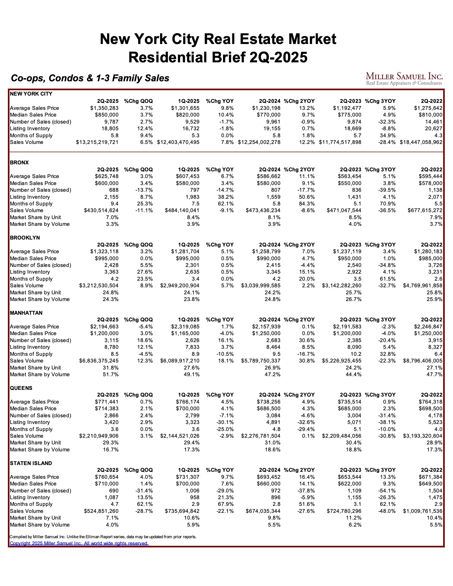 Miller Samuel New York City Market Brief 2Q 2025 [3 Year Comparison]