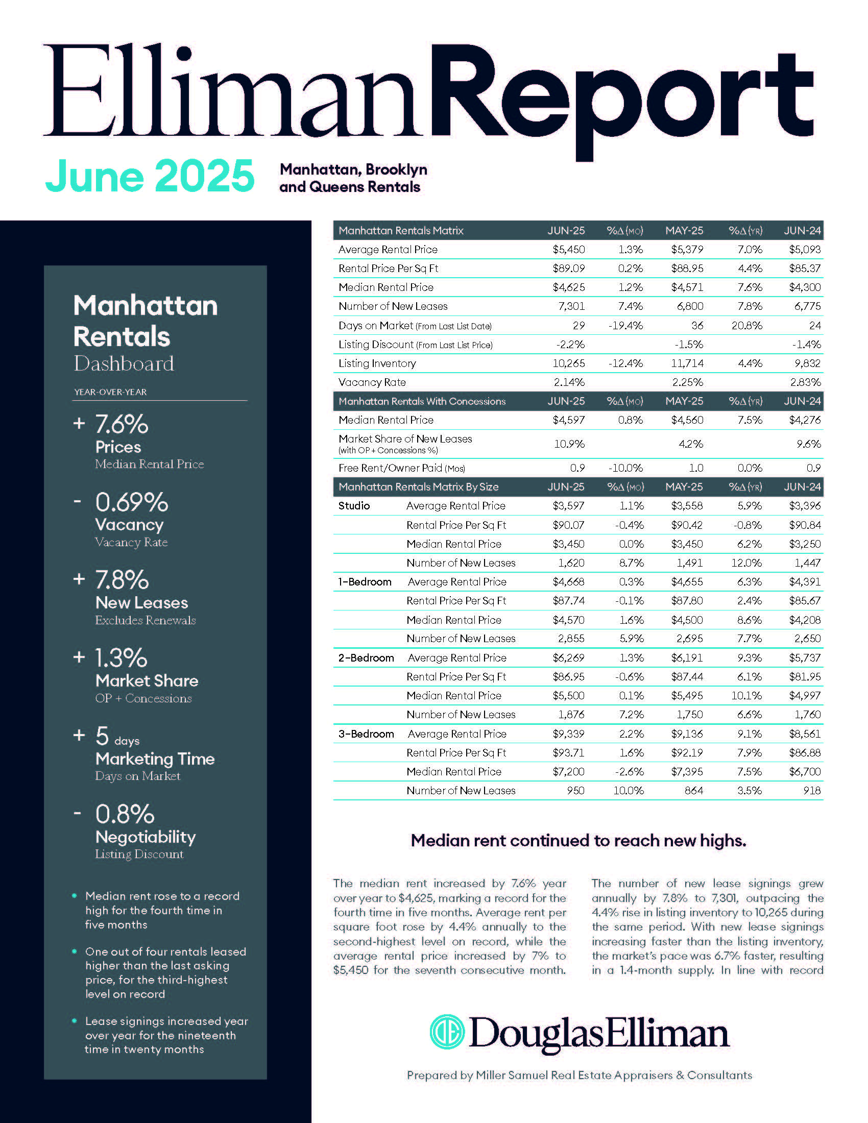Elliman Report: Manhattan, Brooklyn & Queens Rentals 6-2025